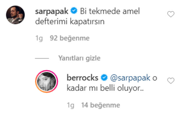 Takipçileri Berrak Tüzünataç'ın fotoğrafını yorum yağmuruna tutarken, yakın arkadaşı Sarp Apak da o paylaşıma kayıtsız kalmadı.