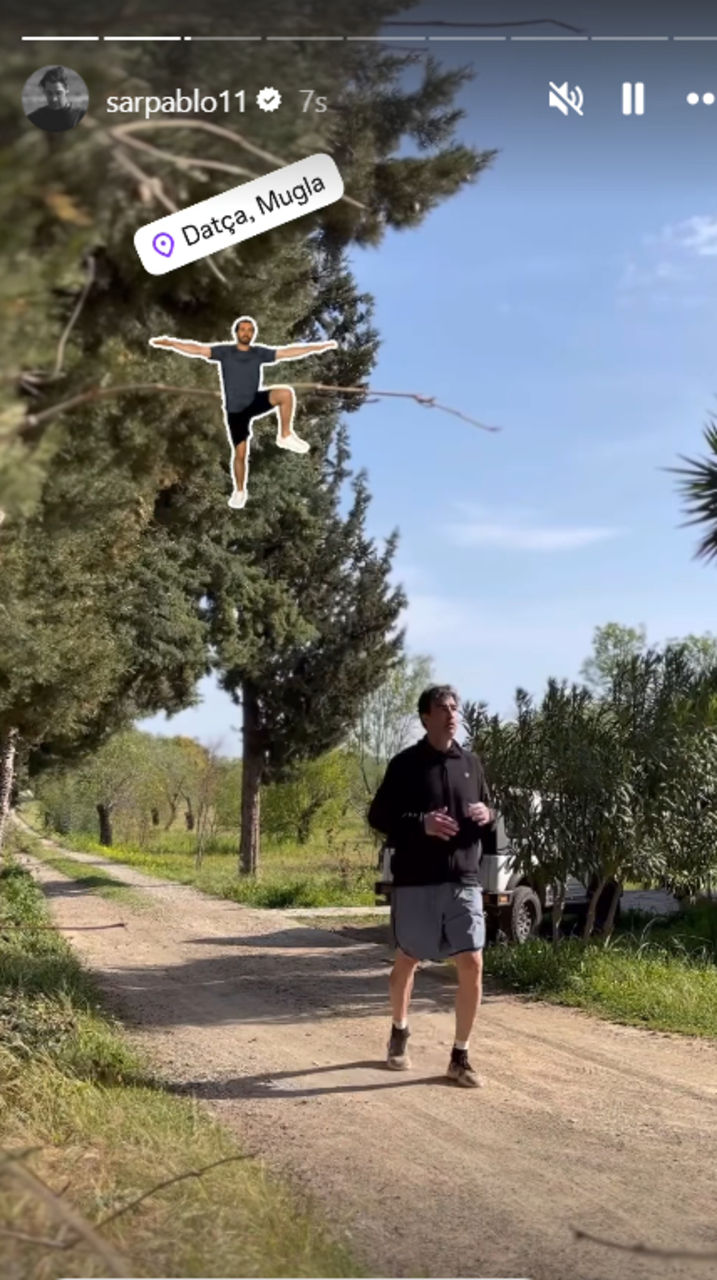 Son olarak, serin havada hortumla duş aldığı anları paylaşan Sarp Levendoğlu; "Burada havuz yok, neden mi? Çünkü hortum var" notunu düştü.