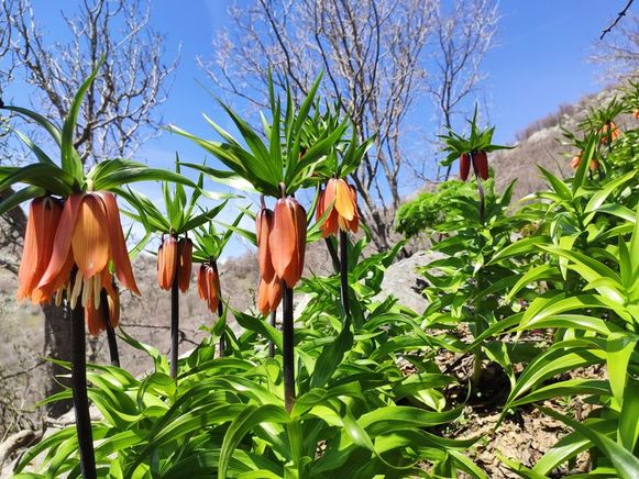 Değirmenci, "Ters laleleri görmek için Helkız Dağı'na çıktık. Doğal ortamda yetişen lalelerimiz doğa tutkunlarını bekliyor, fotoğraf çekmek isteyenlere doyumsuz bir görsel sunuyor." dedi.