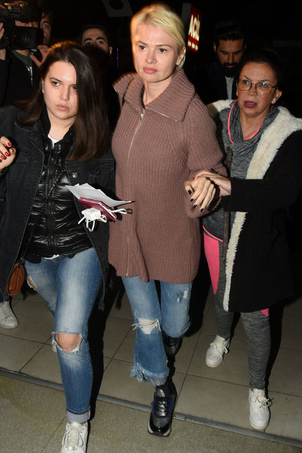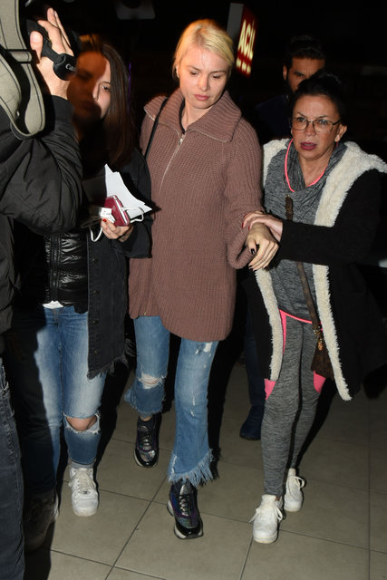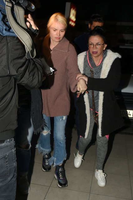 Saatler süren ifadesinden sonra sağlık kontrolü için karakoldan çıkan manken, gazetecilere görüntü vermemek için büyük uğraş verdi.