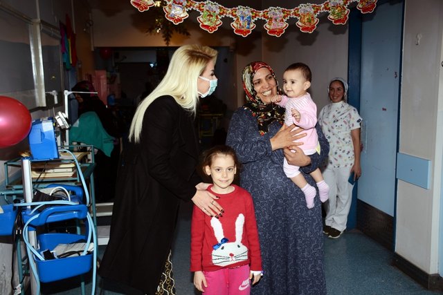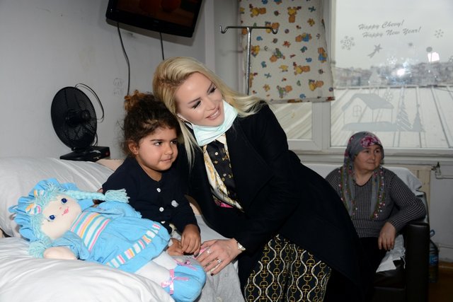Birimde tedavi gören çocuk hastalar ve aileleri tarafından sevgi ile kucaklanan Seda Üren, müşahede altındaki hastaların odalarını da dolaşarak herkese acil şifalar dileyerek hasta yakınlarına moral verdi.