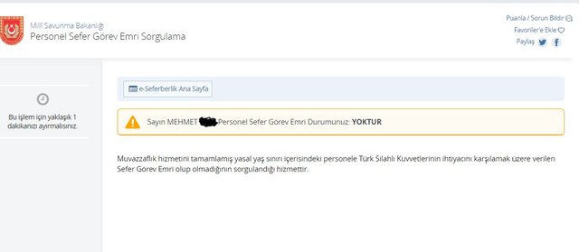 Sorgulama yaptığınız zaman "Sefer Görev Emri sorgulama" sonucunuz ekrana yansır. Herhangi bir görev emri yoksa bu şekilde uyarı alacaksınız.