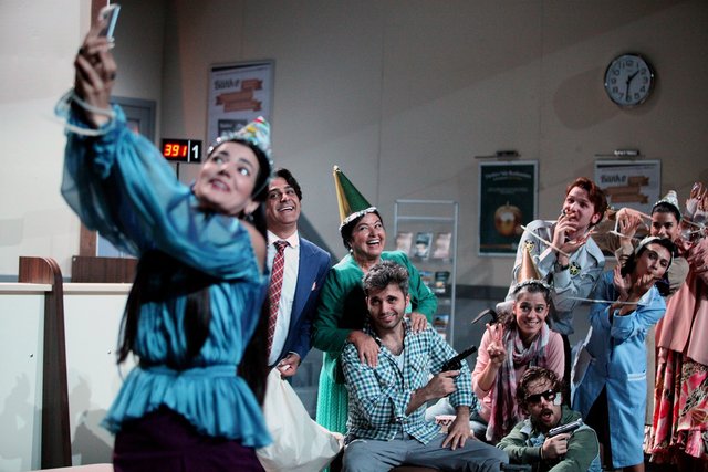 Ancak bugüne dair sürprizleri olan sadece Saadet Hanım değildir ve birkaç dakika sonra bankada yaşanacaklar Saadet Hanım'ın bütün planlarıyla beraber hayatını da altüst edecektir. Oyunda; Arda Alpkıray, Cafer Alpsolay, Çağlar Ozan Aksu, Elyesa Çağlar Evkaya, Esen Koçer, Hazal Uprak, Müslüm Tamer, Nilgün Kasapbaşoğlu, Seda Yılmaz, Selen Nur Sarıyar, Selim Can Yalçın, Serap Doğan, Şenay Bağ, Vildan Türkbaş, Yeliz Şatıroğlu rol alıyor. Oyun, 9-12 Ocak 2019 tarihleri arasında Gaziosmanpaşa Sahnesi’nde.