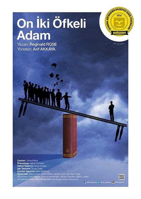 Şüphelinin suçlu olduğunun genel kabul görüldüğü jüride, bir üye bu karara karşı çıkarsa ne olur? 12 jüri üyesi üzerinden adalet kavramını sorgulayan oyun tiyatro seyircisiyle buluşuyor. Reginald Rose’un yazıp Arif Akkaya’nın yönettiği oyunda; Ahmet Özarslan, Ali Gökmen Altuğ, Burteçin Zoga, Enes Mazak, Erkan Akkoyunlu, Gün Koper, Kutay Kırşehirlioğlu, Mehmet Avdan, Metin Çoban, Nihat Alpteki, Rahmi Elhan, Serdar Orçin, Selçuk Yüksel rol alıyor. Oyun, 2-5 Ocak 2019 tarihleri arasında Üsküdar Kerem Yılmazer Sahnesi’nde.