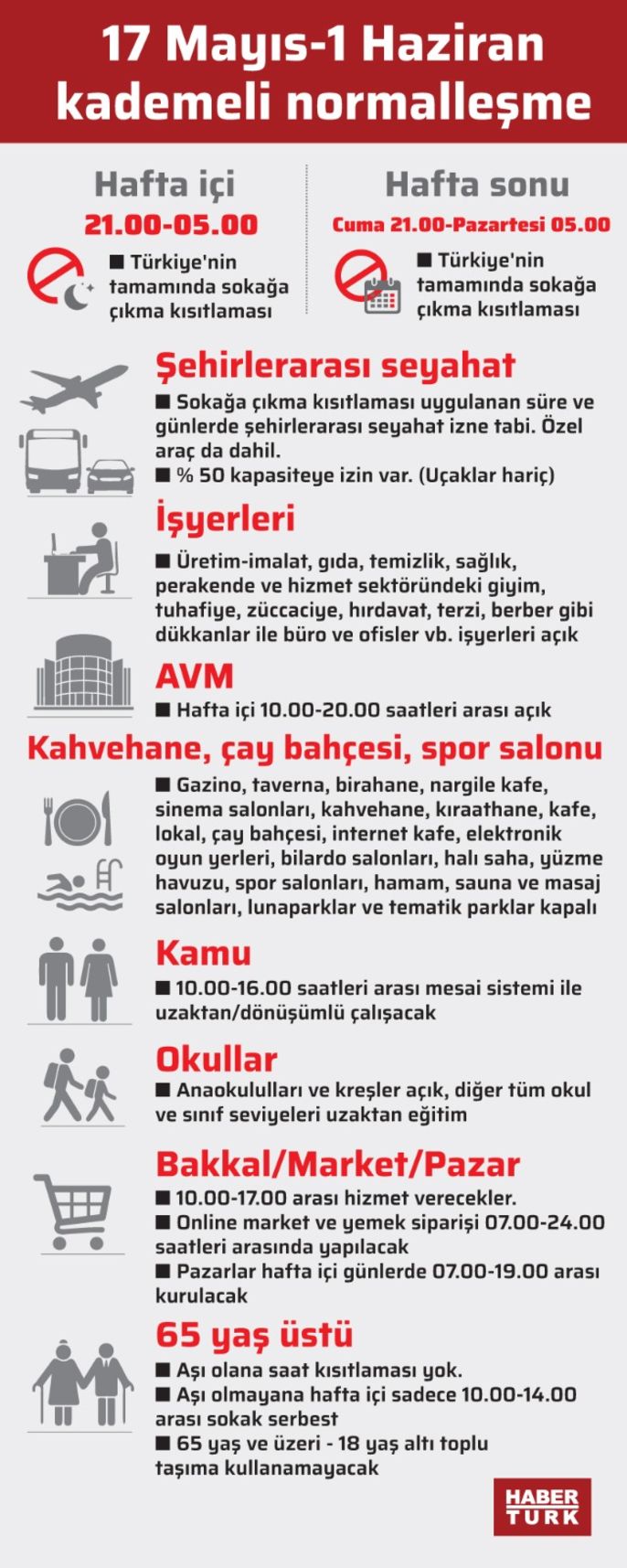 Kademeli normalleşme döneminde; sokağa çıkma kısıtlaması uygulanan süre ve günlerde (hafta içi ve hafta sonunda) şehirler arası seyahat kısıtlaması uygulanacaktır.