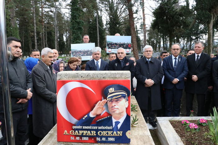 AA'nın haberine göre, Şehit Emniyet Müdürü Ali Gaffar Okkan için şehadetinin 24. yılında Sakarya'nın Hendek ilçesindeki mezarı başında da tören düzenlendi. Törene, ailesi ve yakınlarının yanı sıra Vali Rahmi Doğan, AK Parti Sakarya Milletvekili Ali İnci, Hendek Kaymakamı Halil İbrahim Acır, İl Emniyet Müdürü Selçuk Doğuş, Hendek Belediye Başkanı İrfan Püsküllü, siyasi partilerin temsilcileri ve vatandaşlar katıldı.