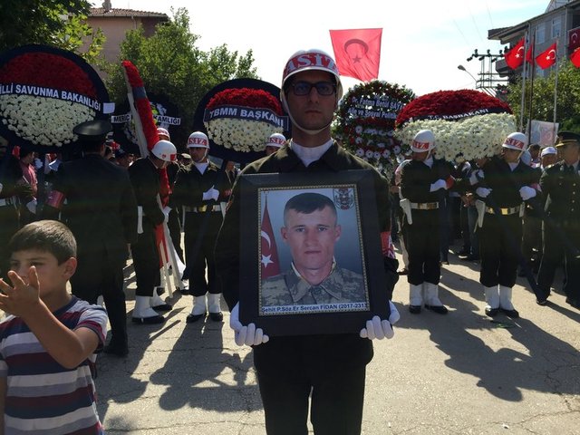 Hakkari'de Tekeli Üs bölgesine PKK'lı teröristlerin Kuzey Irak'tan düzenlediği saldırıda şehit olan sözleşmeli er 25 yaşındaki Sercan Fidan'ın cenazesi, memleketi Edirne'nin Meriç İlçesi'ne bağlı 2 bin nüfuslu Küplü Beldesi'nde 10 bin kişinin katıldığı törenin ardından toprağa verildi. Sercan Fidan'ın annesi ve kız arkadaşı, Türk bayrağına sarılı tabuta kapanarak gözyaşı döktü.