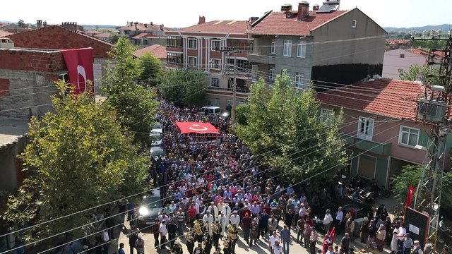 Şehit Sercan Fidan'ı Edirne'nin 2 bin nüfuslu Küplü Beldesi'nde 10 bin kişi uğurladı