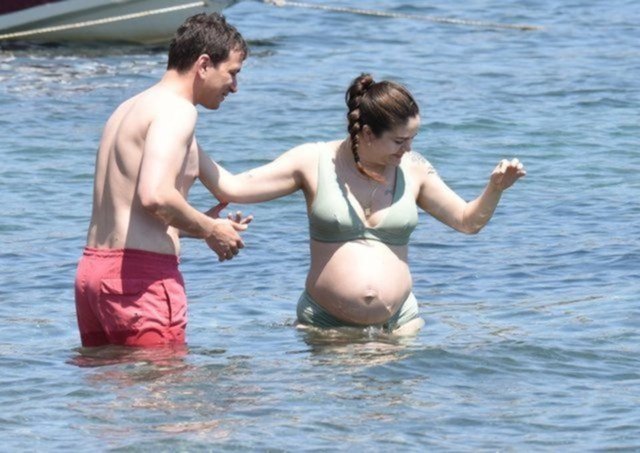 İkili, doğuma günler kala Bodrum'da objektiflere yansımıştı. Paşalı ve Tümer bir süre plajda sohbet ettikten sonra soluğu Ege'nin serin sularında almıştı.