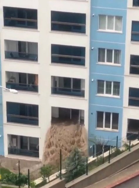 Türkiye'yi etkisi altına alan şiddetli sağanak yağışta dün inanılmaz bir görüntü ortaya çıktı. Başkent'te bir binada sel suları balkondan şelale gibi aktı. Eksi 1'inci kattaki 2 dairenin ise daha önce 2 kez su bastığı, bu yüzden de evlerin boş bırakıldıkları ortaya çıktı