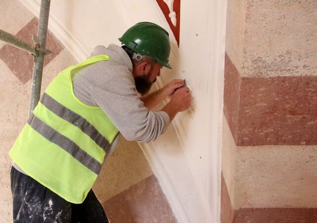 TÜRK- İslam mimarisinin zirve eserlerinden, UNESCO Dünya Kültür Mirası Listesi'ndeki Selimiye Camisi'nde restorasyon çalışmalarında, minareler, kapı ve pencere onarımları tamamlandı. Tarihi camide kalem işi ve alçı süsleme işlerinin sürdüğünü söyleyen Edirne Vakıflar Bölge Müdürü Ahmet Saraç, "Yüzde 70 seviyelerine geldik diyebilirim. Artık ince işçilik dediğimiz, daha fazla zaman alacak, daha fazla dikkatli olmamız gerektiren imalatlar, kalem işi, süslemeler bu imalatlarımıza başlamış bulunuyoruz" dedi
