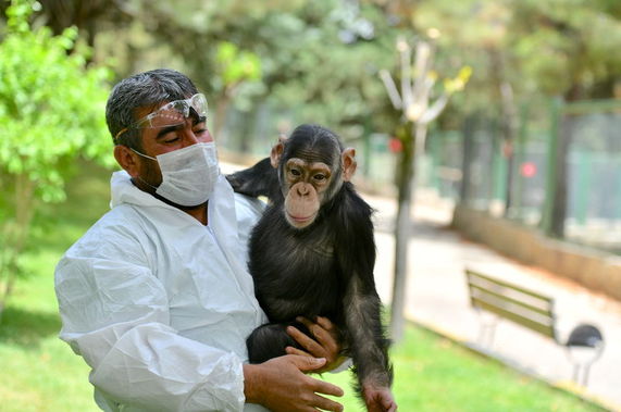 Doğduktan sonra annesi tarafından terk edilen ve bakıcıları tarafından büyütülen Gaziantep Hayvanat Bahçesi'nin maskotu şempanze "Can", koronavirüs tedbirleri kapsamında yaklaşık iki aydır barınağından çıkamadı.