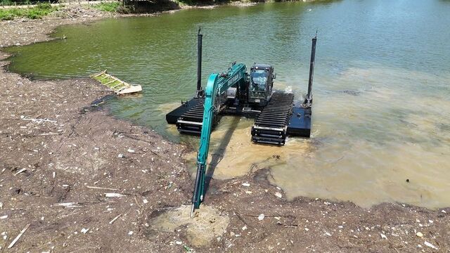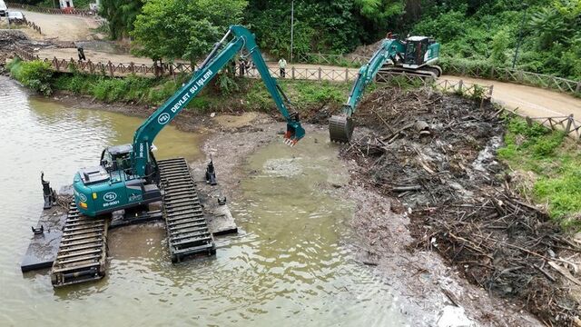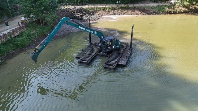 Trabzon'daki Sera Gölü, 30 tonluk yüzer iş makinesiyle temizleniyor