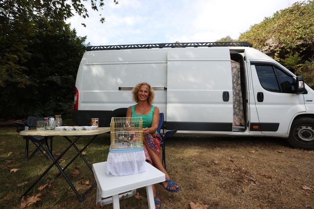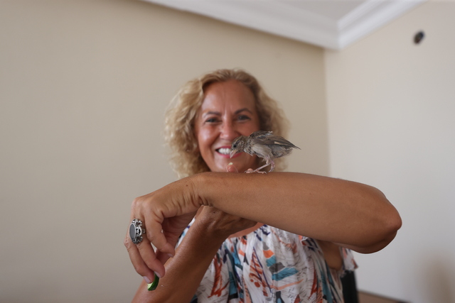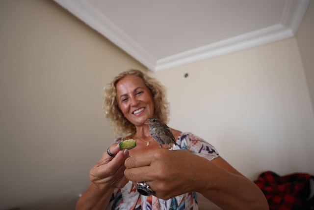 Antalya'da 'Kıvılcım' adını verdiği yuvasından düşen serçe yavrusunu sahiplenen emekli hemşire Yıldız Can, özenle beslediği kuşu karavanına alarak 3 bin kilometreyi aşkın yol yaptı