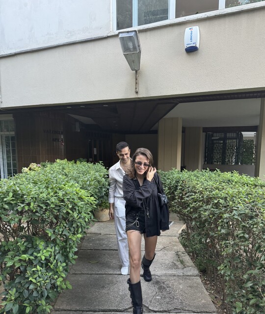 Hisarüstü'nde bir evden çıkarken görüntülenen Serenay Sarıkaya ile Mert Demir, birlikte oturmaya hazırlanıyor