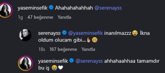 Paylaşımı gören Serenay Sarıkaya, Mahmut Tuncer'i ti'ye alarak; "İnanılmaz. İkna oldum, olacağım gibi..." esprili bir yanıt verdi.