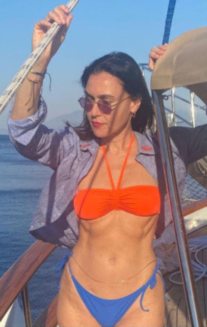 42 yaşında olmasına rağmen fit vücuduyla adından söz ettiren Çağla Şıkel, Çeşme tatilinde simli bej rengi mayo giymeyi tercih etti.