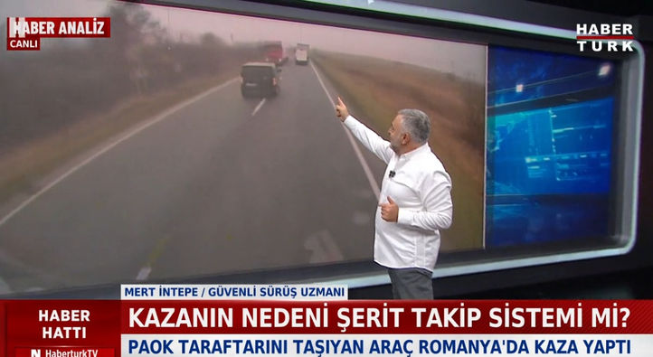 Romanya'da, Yunanistan'ın PAOK kulübü taraftarlarını taşıyan minibüsün TIR ile çarpışması sonucu meydana gelen kazada 7 kişi hayatını kaybetti. Kazada ise, "Şerit takip sistemi direksiyonu kilitledi" iddiası ortaya atıldı. Habertürk TV'ye açıklamalarda bulunan Güvenli Sürüş Uzmanı Mert İntepe ise, "Araç 2017 model ve şerit takip sistemi bu modelde yok. Sebebi bilinmeyen bir şekilde sola gidiyor. Yüzde 98 sürücü hatası var" dedi
