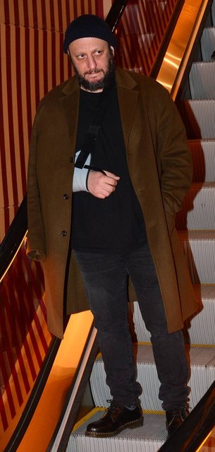 Sargılı koluyla dikkat çeken Serkan Keskin, bu durumu soran muhabirlere "İki gün önce yürürken ayağım kaydı, sırt üstü düştüm. Omzum çıktı." yanıtını verdi.