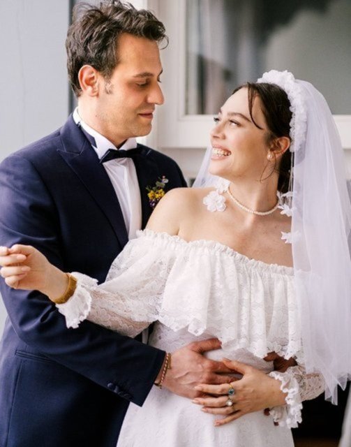 Ayrıca Demet Evgar, nikah töreninde annesinin gelinliğini giymişti.