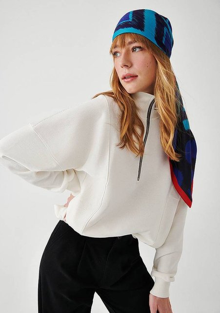 Mavi Icon oversize fermuarlı beyaz sweatshirt, 189 TL
