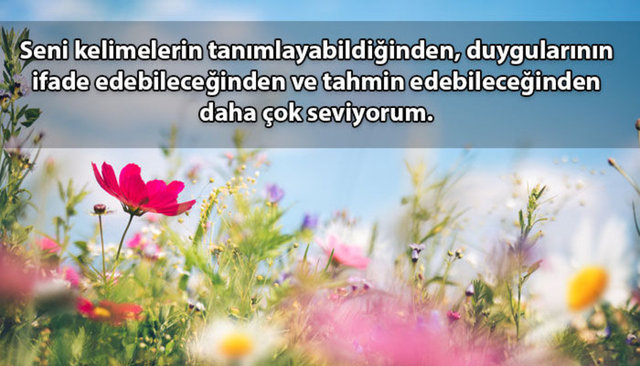 Şimdi sen benim seni ne kadar sevdiğimi soruyorsun ya. Ben seni bir çiçeğin suyu sevdiği kadar, bir gecenin sabaha hayranlığı kadar, bir toprağın yağmuru sevdiği kadar çok seviyorum.