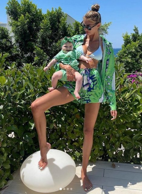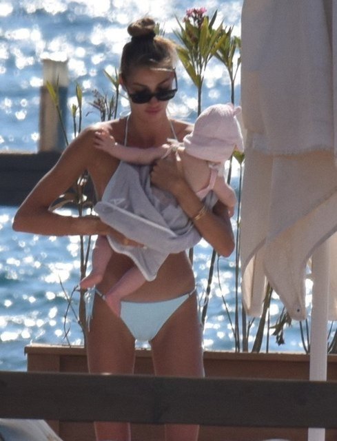 Beyaz bir bikini giymeyi tercih ettiği görülen ünlü model, bir ara annesinin kucağında su ile tanışan yeğenini cep telefonu ile görüntülemişti.