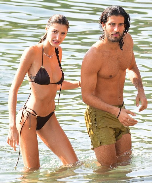 Ardından sudan çıkan Şevval Şahin, sevgilisiyle birlikte şezlongta güneş banyosu yaptı. Şahin ile Kazancıoğlu, birbirlerini öpücüklere boğdu.