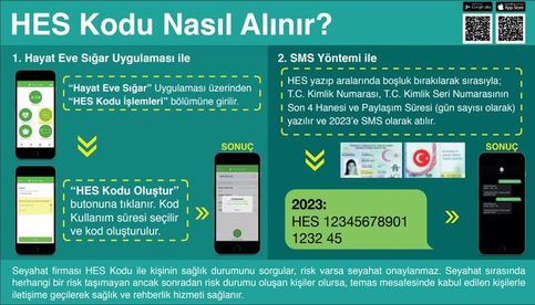 HES kodu Hayat Eve Sığar uygulaması ya da SMS yöntemi ile alınabilir.