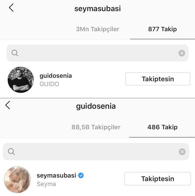 Şeyma Subaşı-Guido Senia çiftinin ayrıldığı iddia edilmişti. Konuyla ilgili açıklama yapmayan çift ile ilgili sürpriz bir gelişme yaşandı. İkili, tekrar birbirlerini sosyal medya hesaplarından takip etti