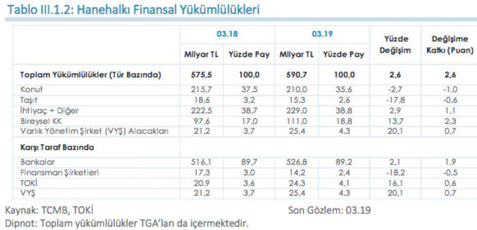 Cuma günü Merkez Bankası yılda iki kez açıkladığı Finansal İstikrar Raporunu yayımladı. Bu raporda yer alan verilere göre hanehalkının finansal varlıkları büyürken, borçları küçülüyor. 2018 Mart ayını 2019 Mart ayı ile karşılaştıran raporda hanehalkının toplam finansal varlıkları bir yılda 266.4 milyar lira arttı ve 1.5 trilyon lirayı geçerek 1.505.8 milyar liraya yükseldi.