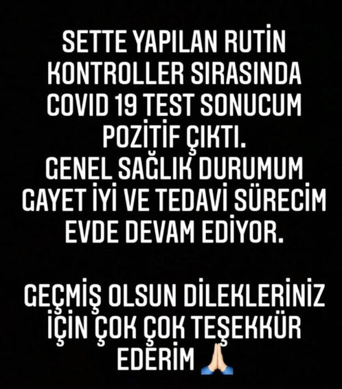 Sette yapılan rutin kontroller sırasında Covid-19 test sonucum pozitif çıktı. Genel sağlık durumum gayet iyi ve tedavi sürecim evde devam ediyor. Geçmiş olsun dilekleriniz için çok teşekkür ederim.