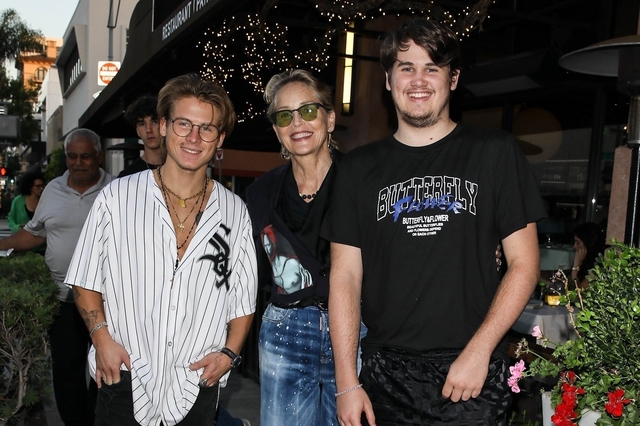Sharon Stone, oğulları Roan (24) ve Laird (19) ile Beverly Hills'teki restorandan ayrılırken görüntülendi.