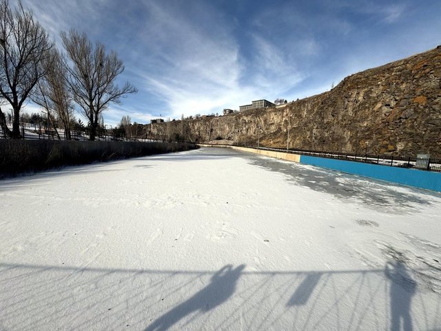 Kura Nehri'nin yüzeyinde de kalın buz tabakası oluştu.