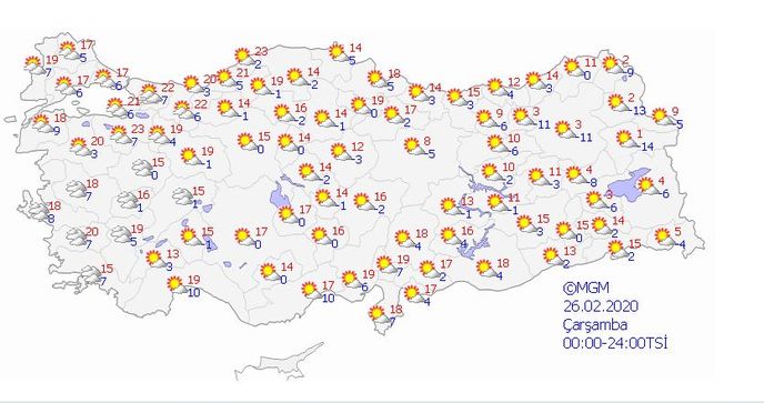 Sıcaklık yarın Ankara'da 15, İstanbul'da 17, İzmir'de 18 ve Bursa'da 20 dereceye çıkacak. Yurt genelinde çarşamba günü güneşli olacak. İç ve Doğu Anadolu'da da kar yağışı beklenmediği öğrenildi.