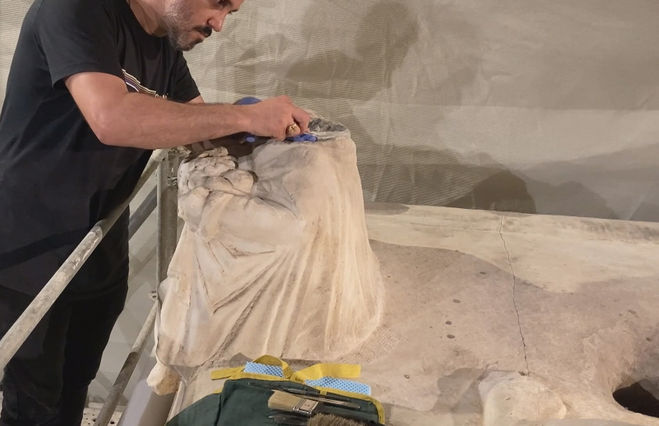 Dışişleri Bakanlığı ve Türk Hava Yollarının desteğiyle Türkiye'ye taşınan Eros başı, ağırlığı 30 tonu aşan dev lahde, İstanbul Arkeoloji Müzeleri ile Victoria & Albert Müzesi uzman restoratörlerinin ortak bilimsel çalışmalarıyla yerleştirildi.