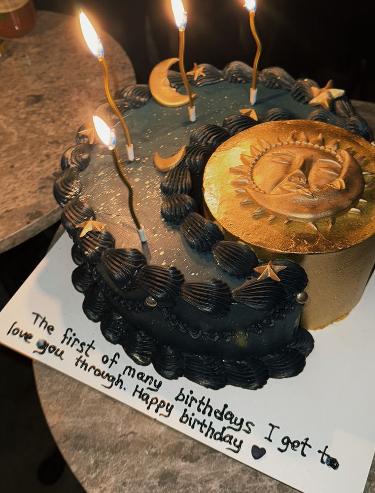 İkilinin, yakın arkadaşlarının katıldığı partide Ata Ayyıldız, sevgilisine olan sevgisini pastanın üzerine yazdırdığı; "Seni sevebileceğim birçok doğum günlerinin ilki..." sözleriyle ifade etti.