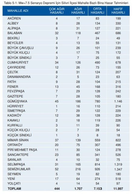 *Senaryo depremi için Silivri ilçesi mahalle bazlı "bina hasar" tahminleri