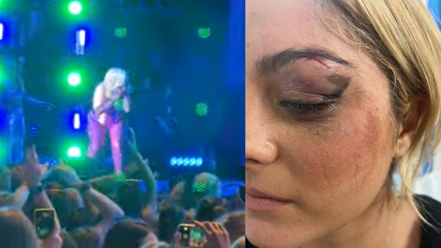 Konserde yüzüne fırlatılan telefon nedeniyle kaşına üç dikiş atıldı.