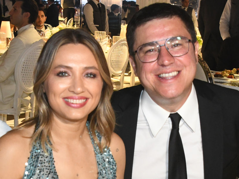 Fatih Terim ve eşi Fulya TerimSibel Can, gecede kollarında pembe tüy detaylı siyah bir elbise ile sahne aldı.