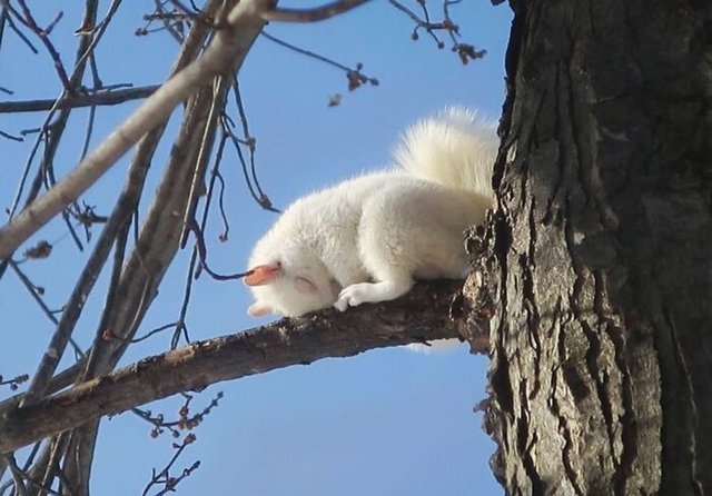 Bir internet kullanıcısının eşi tarafından kaydedilen albino sincap.