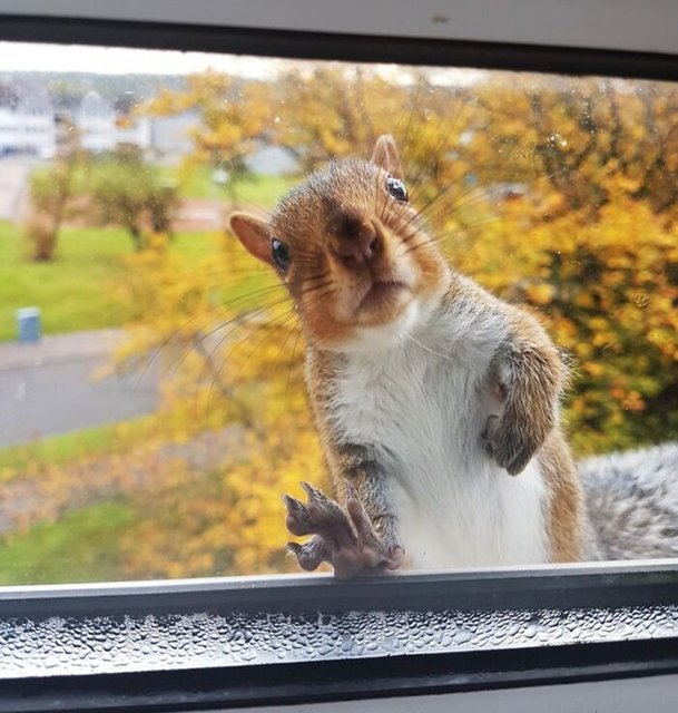 Cam pencereyi yalayan sincabın görüntüsü sosyal medyayı mest etti.
