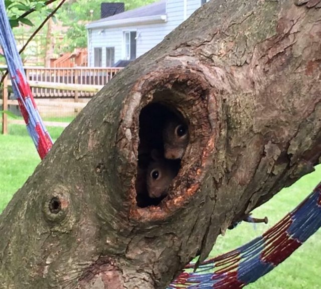 Ağaç kavuğunda yaşamaya başlayan sincap ailesinden sevimli bir kare...