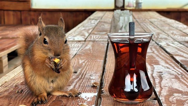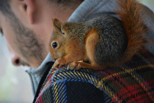 Kocaeli'de bir ağaç kovuğunda bulunan yavru sincap, doğaya dönmek yerine, insanlarla yaşamayı tercih etti. Otomobille gezen, çay içen, omuzlardan inmeyen sincabın sevimli halleri gülümsetiyor