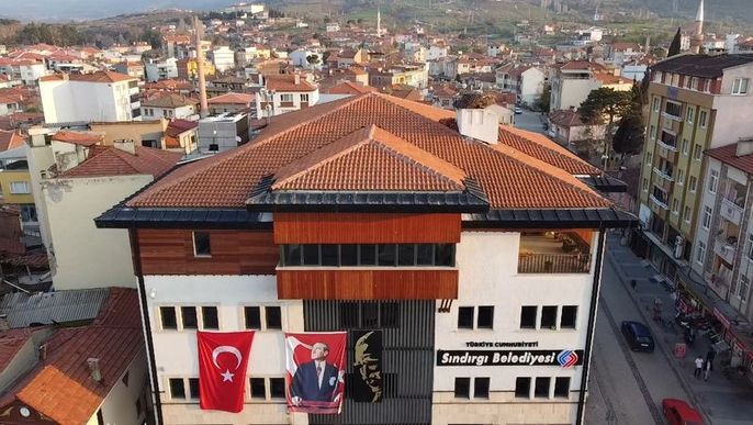 Balıkesir'in Sındırgı ilçesinde 1962'de inşa edilen belediye hizmet binasının 7 yıl önce yıkılarak yeniden yapılmasına karar verildi ancak binanın çatısındaki yuvada yaşayan leyleğin ayrılmaması nedeniyle yıkım durduruldu.