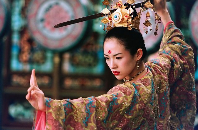 Zhang Ziyi'nin canlandırdığı Xiao Mei de bunlardan biridir... İlk bakışta gözleri görmeyen genç bir dansçıdır. Zayıf ve minyondur. Ama film ilerledikçe sahip olduğu dövüş yetenekleri ve gerçek kimliği ortaya çıkmaya başlar... Zhang Yimou'nun yönettiği film, baleyi andıran dövüş sahneleriyle Uzakdoğu dövüş filmlerine estetik bir zerafet getirir, Zhang Ziyi de erkeklerin dünyasında kadınlığın gücünü temsil eder.