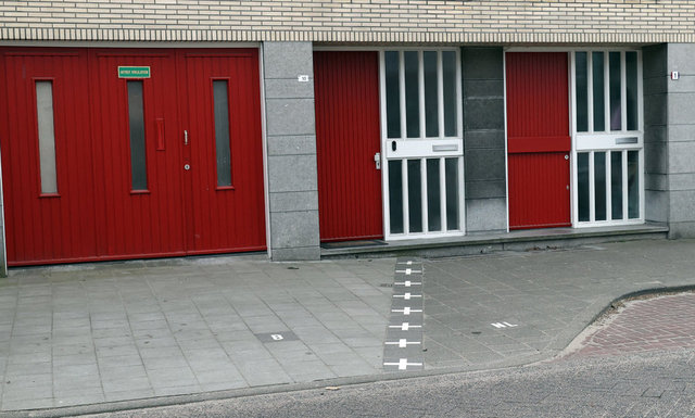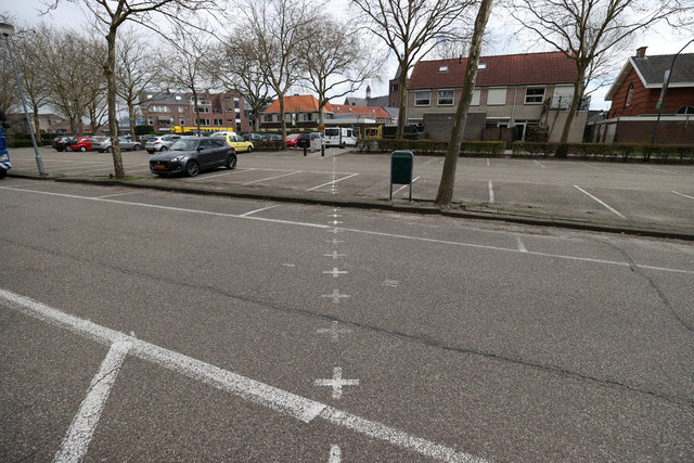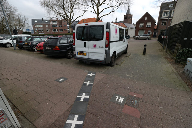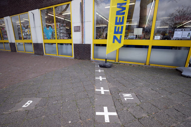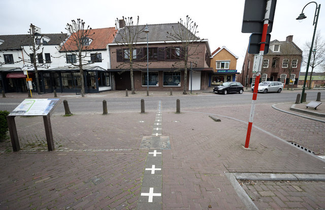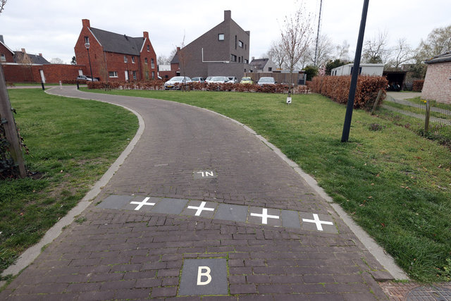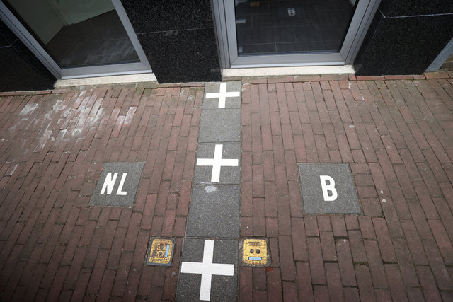 O zaman çizilen sınırların büyük bölümü şimdi gözle görünür şekilde kasabanın içinde uzanıyor. Artı (+) işaretlerinden oluşan çizginin bir tarafında Hollanda'nın simgesi "NL", diğer tarafında Belçika için "B" harfleri yer alıyor.
