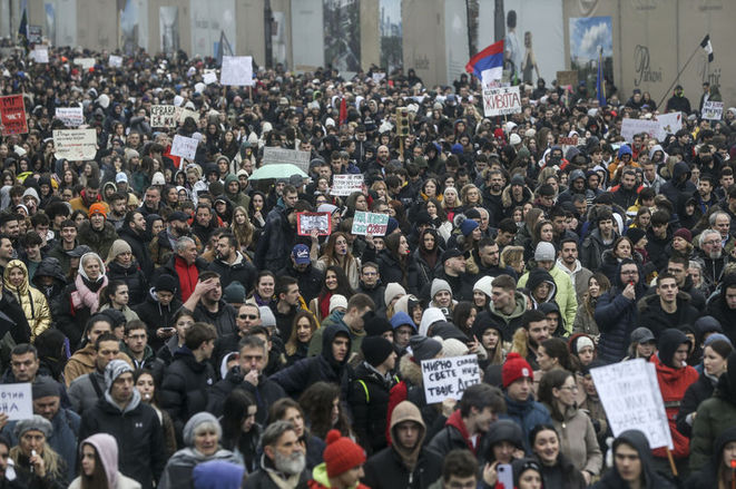 Novi Sad'daki tren istasyonunda 1 Kasım 2024'te beton sundurmanın çökmesi nedeniyle 15 kişinin ölmesinin ardından hükümete tepki gösteren öğrenciler ülke genelinde "Dur Sırbistan" sloganıyla gösterilere başlamıştı.