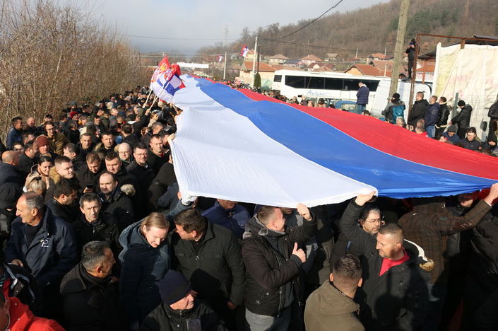 Şehrin iki ana caddesinin trafiğe kapatıldığı gösteride, "Kosova Sırbistan'ın kalbidir", "Vazgeçmek yok", "Kosova'ya ihanet eden Rusya'ya da ihanet eder" yazılı döviz ve pankartlar taşındı.