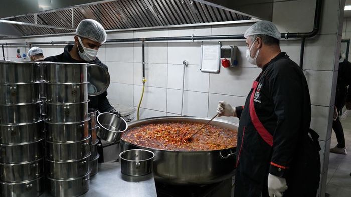 Şırnak'ta "Sıcak Yemek Projesi" kapsamında İl Milli Eğitim Müdürlüğü'ne bağlı öğretmenevinde hazırlanan 3 çeşit sıcak yemek her gün 200 aileye ulaştırılıyor.
